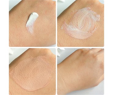Zahvaljujući svojoj promjenjivoj teksturi, tijekom nanošenja oslobađaju se mikroinkapsulirani pigmenti, i tada se njegova bijela tekstura pretvara u nježno obojenu teksturu koja daje blistav i svjež ten.
